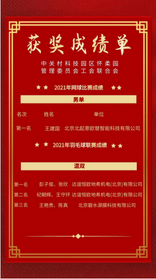 閉幕式上,懷柔區總工會黨組書記、副主席曹巖、懷柔區體育局黨組書記、局長溫春霞,懷柔區總工會二級調研員肖連慶,懷柔園管理委員會黨委書記、工會聯合會主席李建榮,懷柔區體育局副局長張文憲出席,并為獲得名次的運動員頒獎。